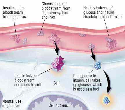 Much of the food we eat is turned into sugar in the blood for our bodies to use for energy. A hormone produced by the pancreas called insulin helps sugar in our blood get into the cells of our bodies. If your body doesn’t make enough insulin or if the insulin doesn’t work the way it should, blood sugar can’t get into your cells and instead stays in your blood, raising your blood sugar level.